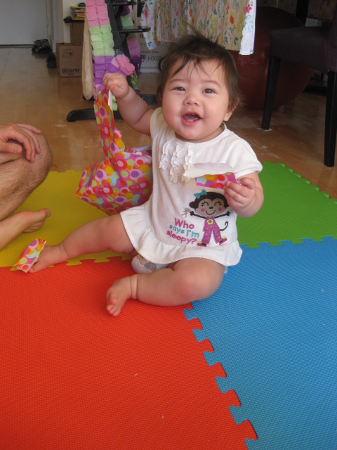 Ten introduced Mia to the wonderful world of sticks...and she found that they made a pretty good snack. |